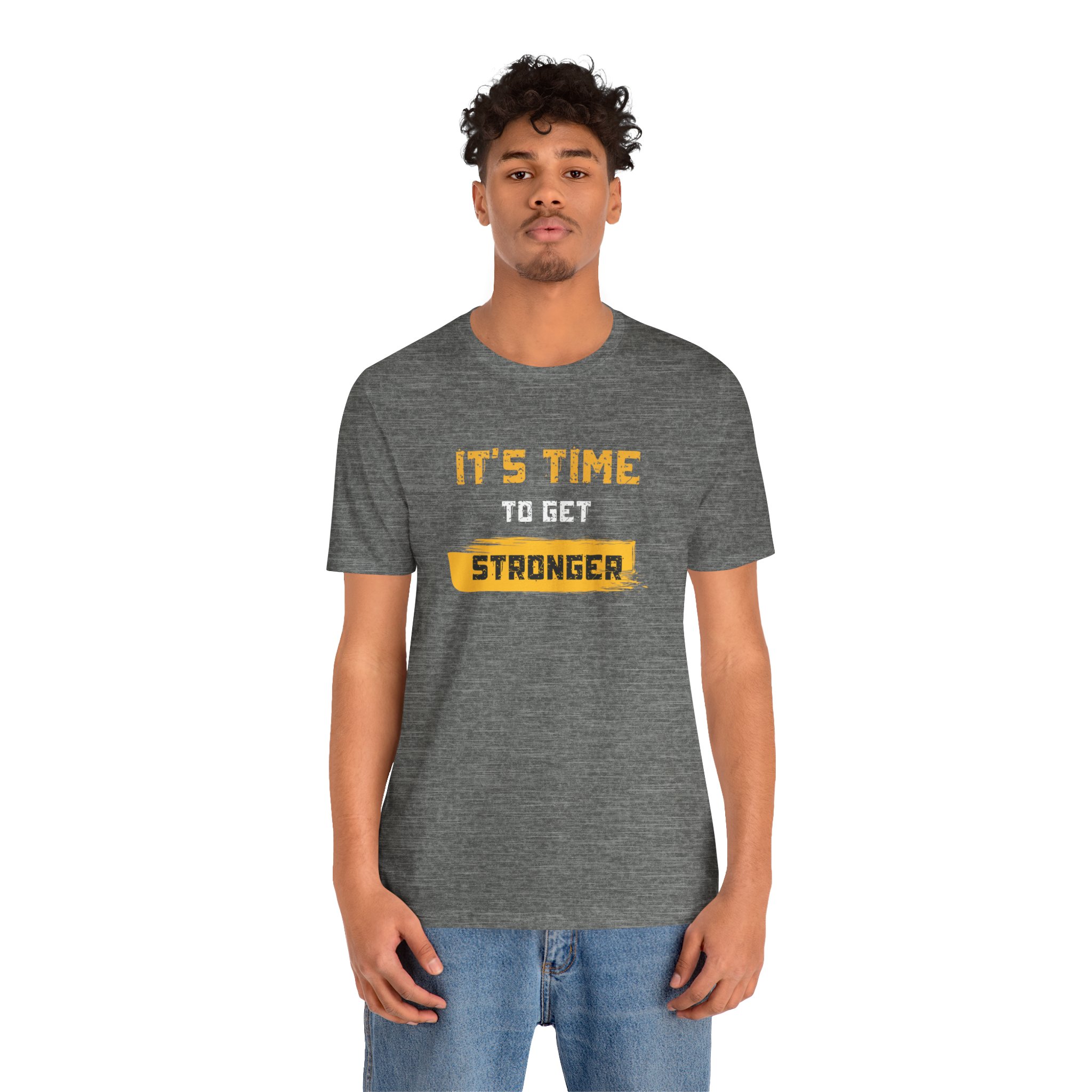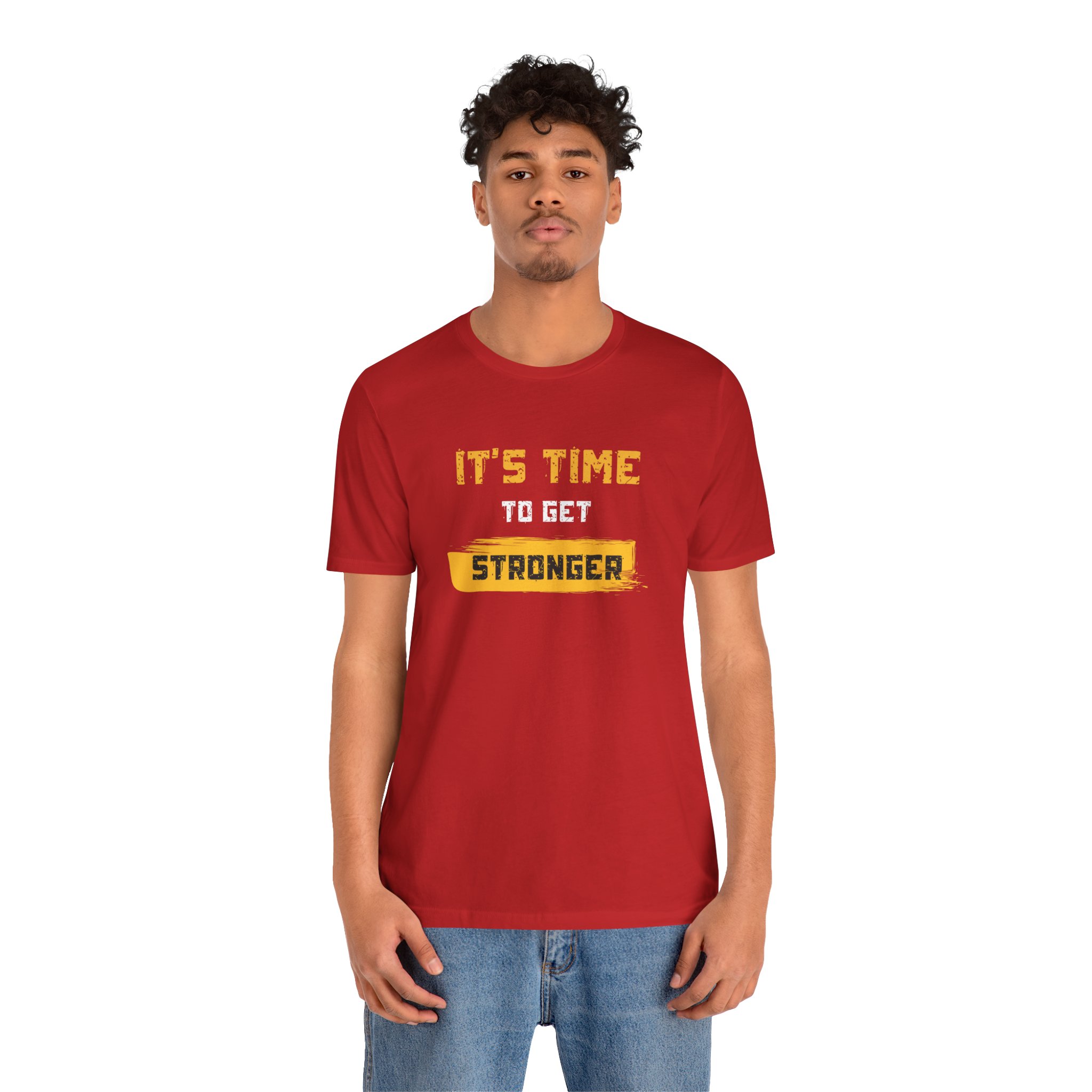 Introducing this stylish Unisex Jersey Short Sleeve Tee, perfect for anyone looking to make a statement. Featuring a vibrant design that boldly declares “IT’S TIME TO GET STRONGER,” this tee radiates motivation and positivity. Crafted from lightweight, breathable fabric, it’s ideal for both active days and relaxed outings. Its classic crew neckline and retail fit make it effortlessly versatile, fitting seamlessly into your wardrobe. This tee is perfect for gym enthusiasts, fitness lovers, or anyone who values encouragement in their daily life. Great for wearing during workouts, casual gatherings, or as a thoughtful gift during holidays like New Year’s, birthdays, or as a motivational present for friends and family. Celebrate strength and resilience with this affirming piece!